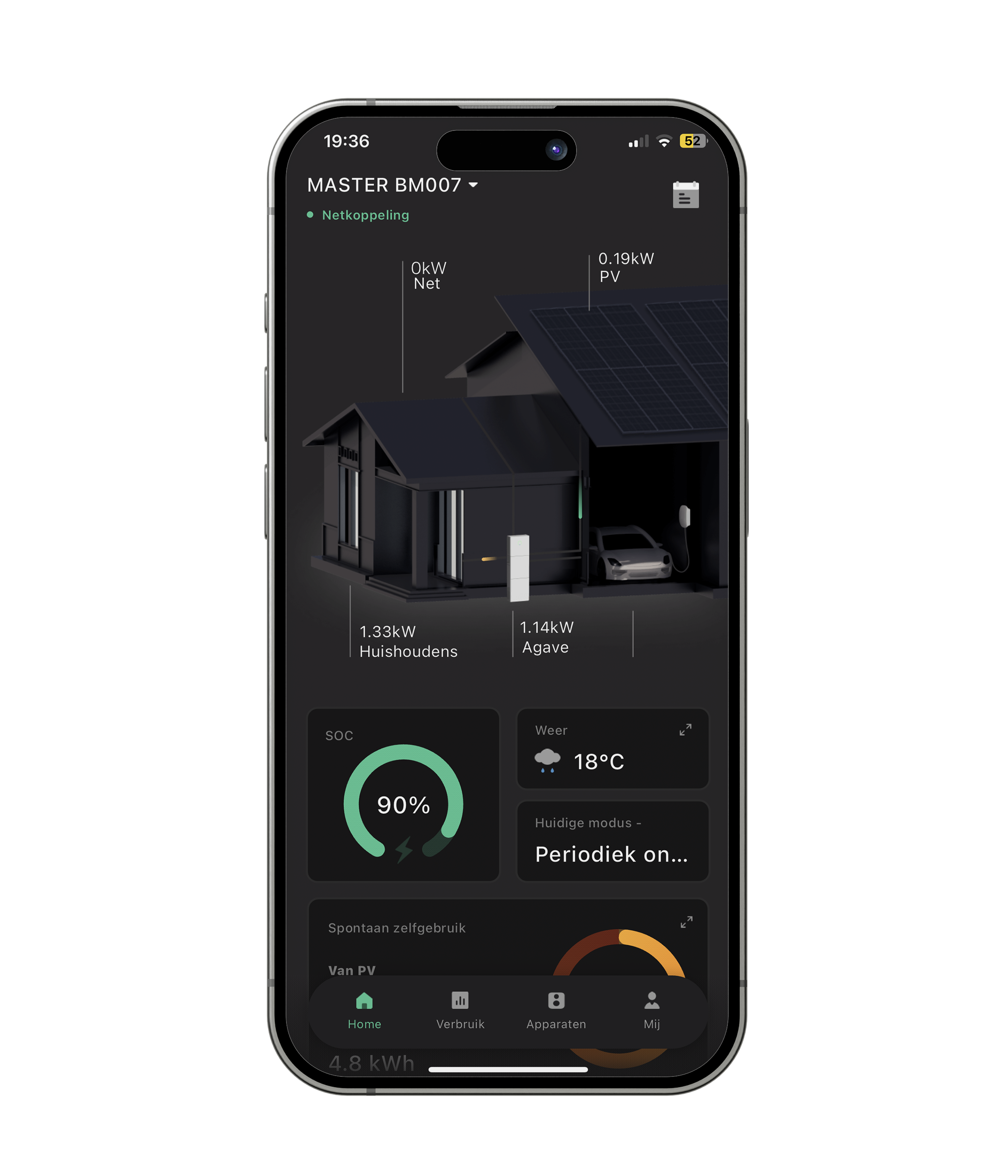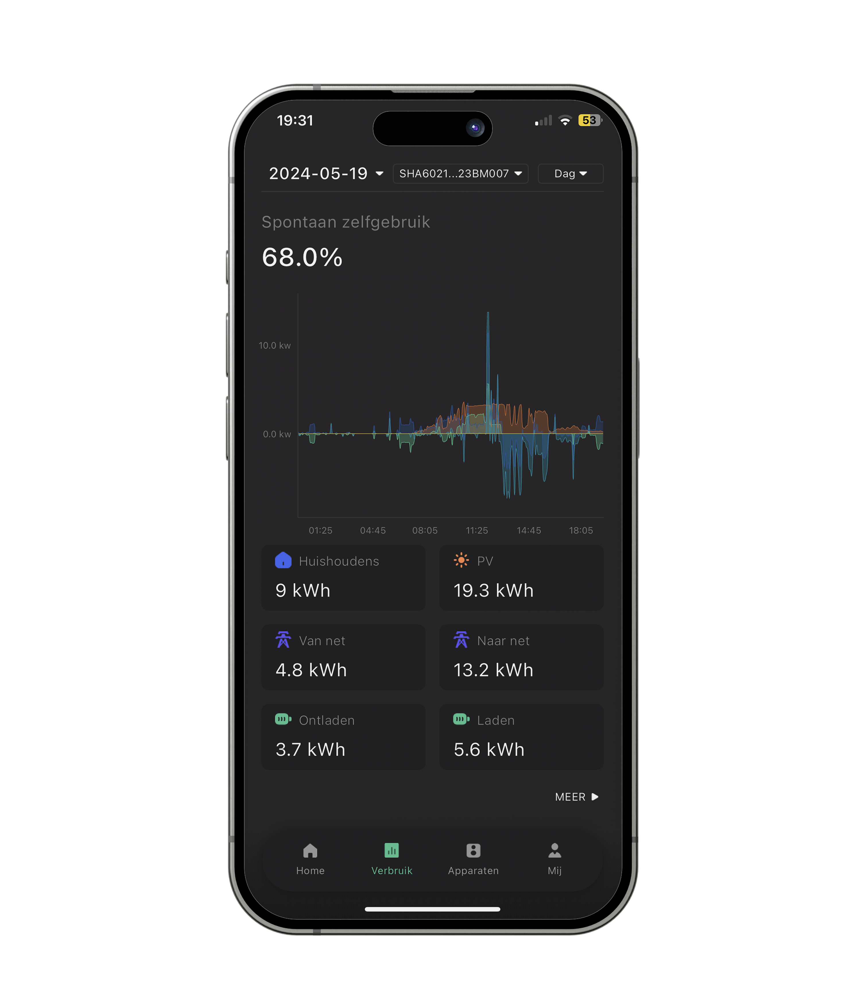 Houd zelf inzicht in je verbruik, opwek, inkoop- en verkoop van jou energie. Of je nou vast, variabel of een dynamisch energie contract hebt... jij bent de baas over je eigen thuisbatterij.